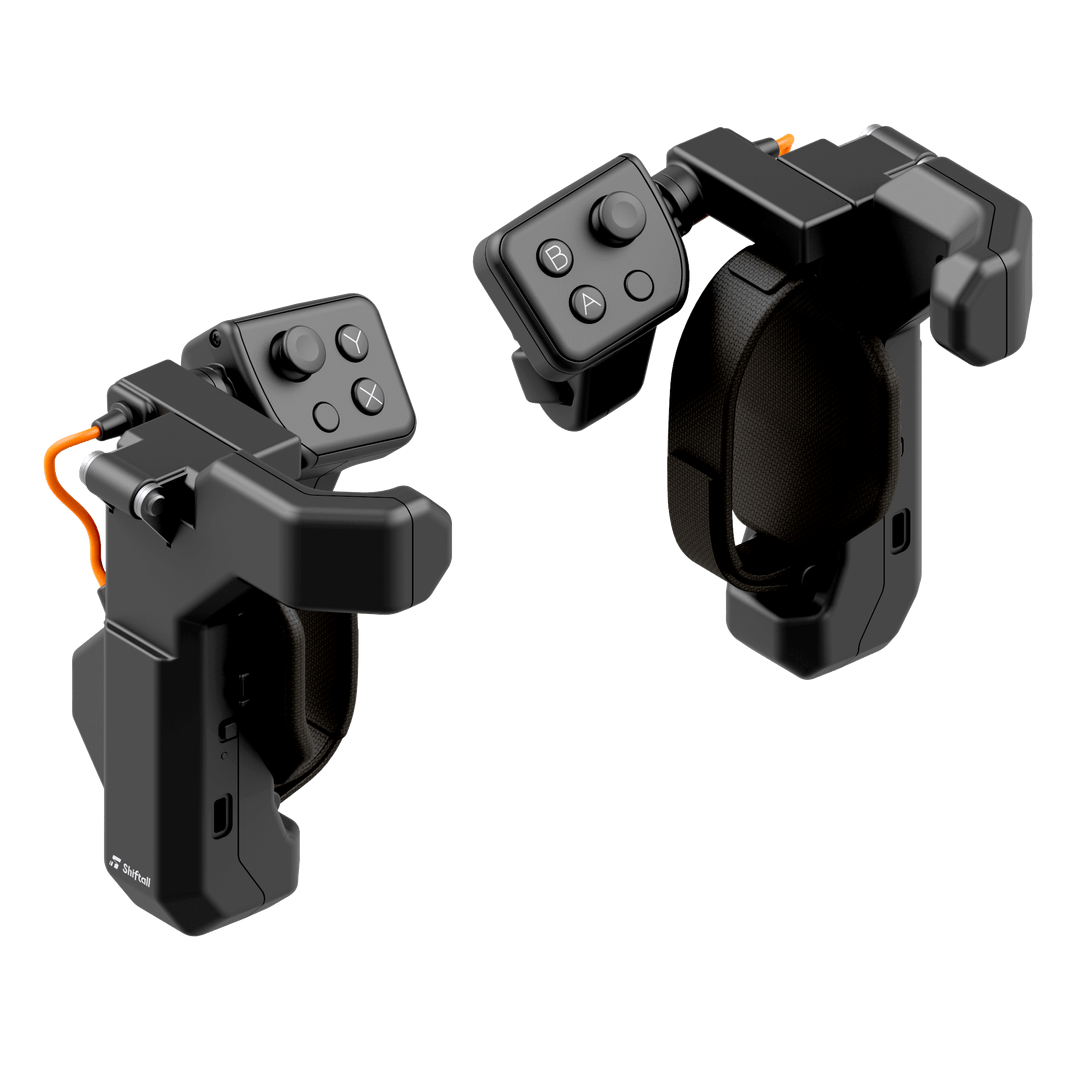 「FlipVR」は新しいスタイルのVRコントローラーです。通常時は手のひら側に位置している操作パネル(操作ボタン・ジョイスティック・トリガー類)を、手首をひねるだけで手の甲側にフリップする(跳ね上げる)ことができるのが最大の特徴です。